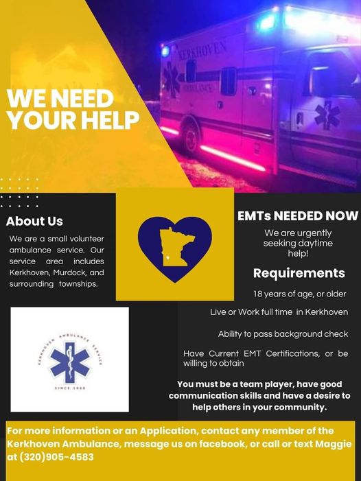 Keep up to date with what's going on with the ambulance crew on their Kerkhoven Ambulance Service Facebook page!